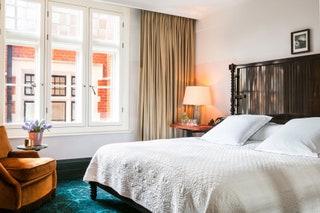 This was the first hotel by celebrated restaurateurs Corbin and King (of theWolseleyfame), and what you’ll first notice on the approach is an enormous pixelated steel figure jutting out of the elegant façade. This isRoom, a three-story sculpture by Antony Gormley that you can sleep inside. It’s an interesting detail for a hotel that otherwise feels very grounded—it’s traditional but stylish, with elegant Art Deco features. Rooms are generously proportioned and come in supremely tasteful shades of stone—slate velvet chairs, sandy-colored curtains—with black-and-white photos on the wall. The bathrooms are spacious and clean-cut with plenty of marble. Each room has a mini library of British classics, and all guests get use of a chauffeur-driven car.