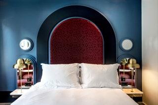 Although Henrietta is run by bartenders—the hotel is part of the Experimental Group, which runs the speakeasy-style Experimental Cocktail Club in Chinatown—it doesn’t feel built for the night. The interiors, rather, are light, whimsical, and irreverently French. The lobby's spring shades and splashes of leopard print continue upstairs in the 18 spacious rooms, which are interesting without being over-the-top. UNusual details include marble skirting boards, terrazzo print carpet, rose-pink velvet chairs, and statement headboards. The mini bar is extensive, and there’s a cocktail recipe book by the bed—should you feel inspired.